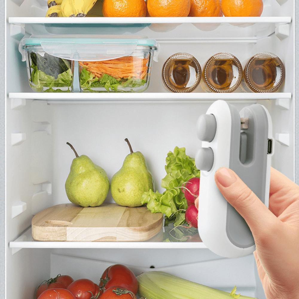A compact and handheld vacuum sealing machine designed for sealing food and snack storage bags effortlessly. The USB rechargeable feature makes it convenient for daily use, ensuring freshness and preventing food from going stale. Lightweight and easy to carry, perfect for home, travel, and kitchen use. Works on various plastic storage bags, providing an airtight seal to lock in freshness.